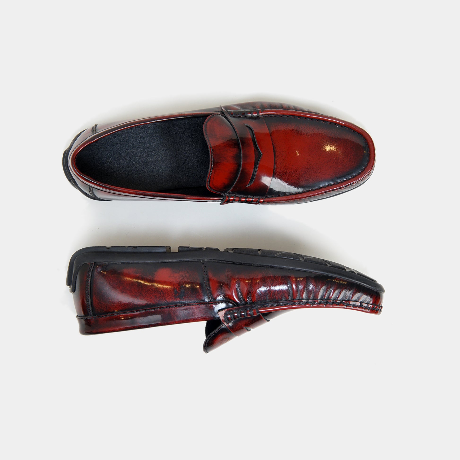 - A Mark of Distinction: Embrace the classic sophistication of these Royal Maroon Patina loafers – a true mark of distinction that reflects your refined sense of style. Elevate your image and showcase your dedication to impeccable fashion.Transform your shoe collection with our 100% leather handmade Men’s Loafers, adorned with the captivating Royal Maroon Patina finish. From boardroom meetings to special occasions, these loafers are the embodiment of elegance and sophistication.